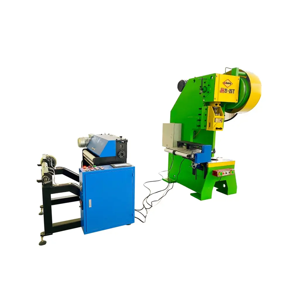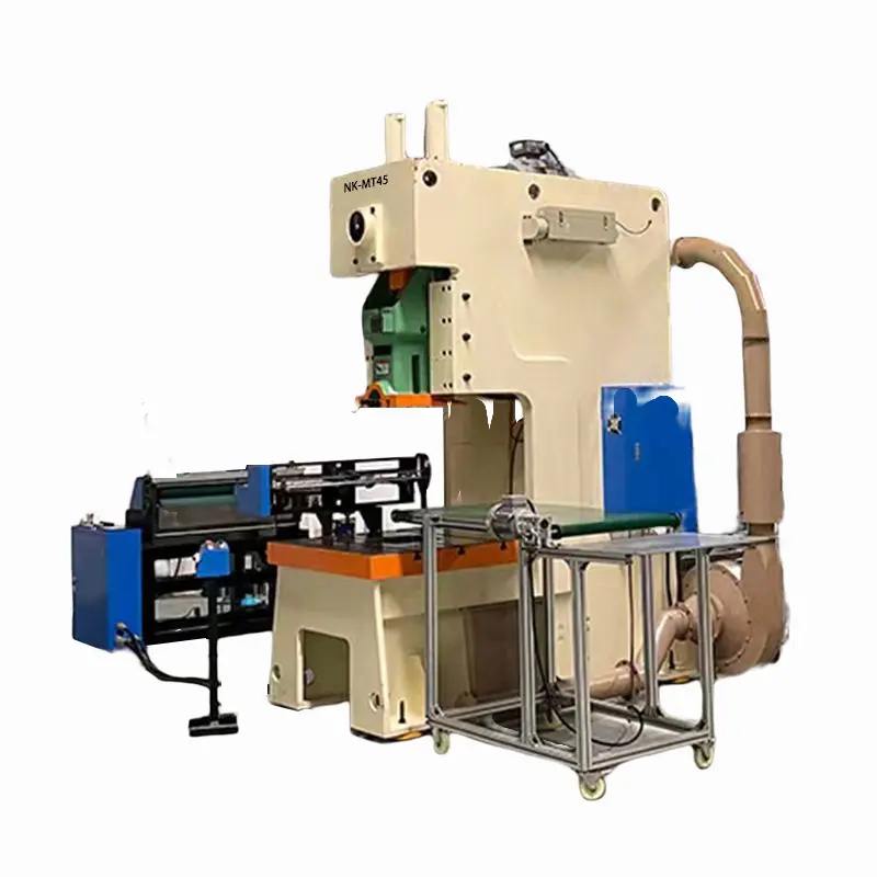 The NK-P25 is a 4kw punch press specifically designed for high-performance aluminum foil container production. It boasts several features to optimize efficiency and safety: a high-performance frequency control system for energy saving, a low-noise and durable air operated clutch, a high abrasion-resistant air pressure balance cylinder for quiet operation, a high-speed signal pickup coder for easier control, an automatic photoelectric protection system for enhanced safety, a multipass air storage system for reasonable air consumption control, and even an automatic lubrication system.